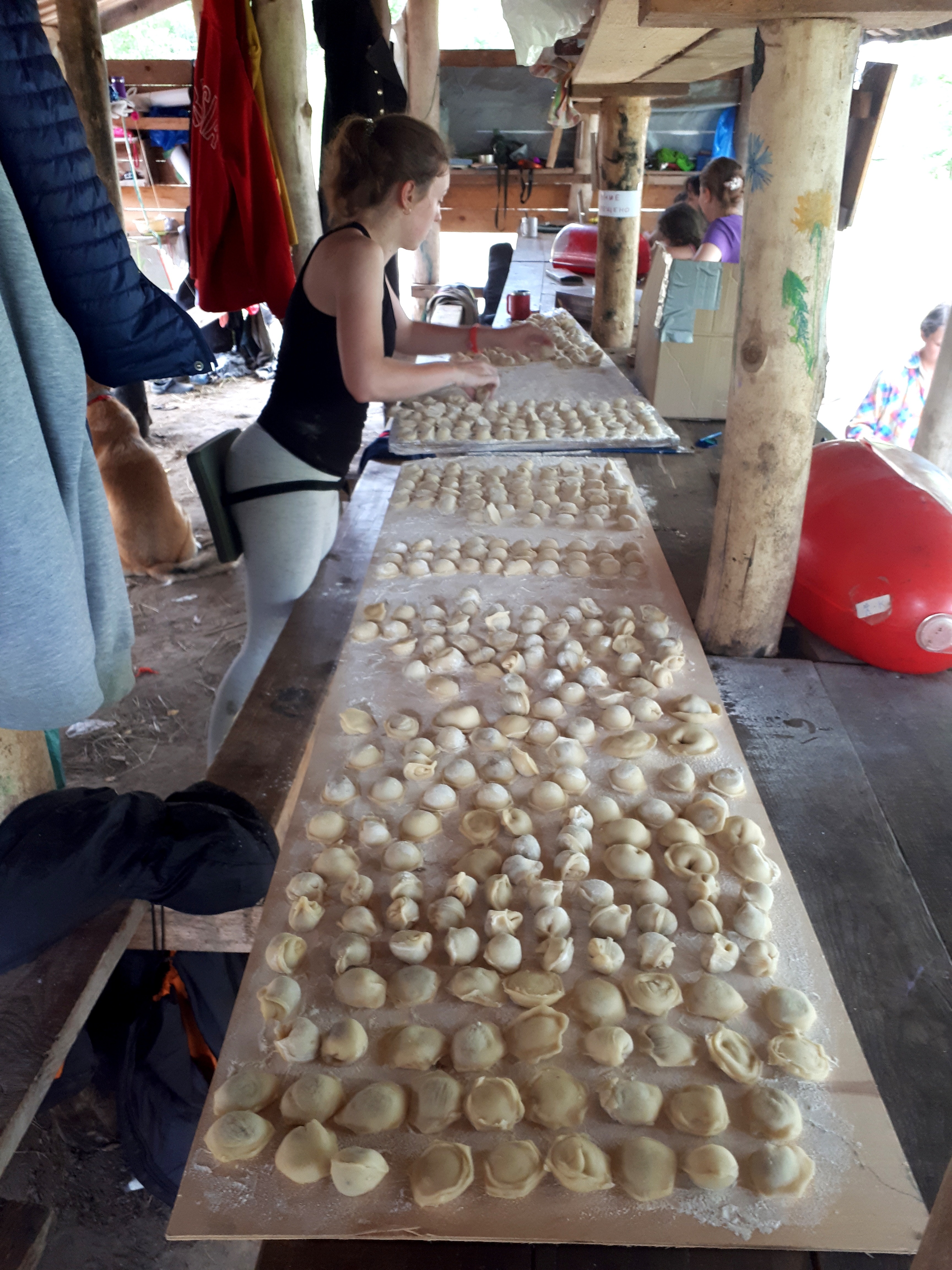 В этом году с погодой можно сказать, что повезло! Хотя пару слякотных дней все же выдались. Особенно первый вечер запомнился дождем, однако это не помешало «свечке» (наше традиционное знакомство) и не испортило общее настроение. Но в основном ребят и стажёров радовало летнее солнышко, такое, что в один из дней были устроены традиционные обливашки.